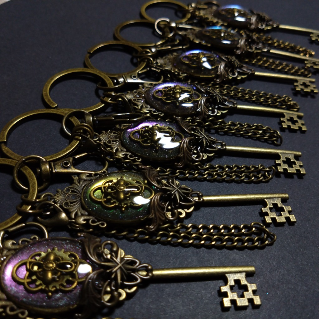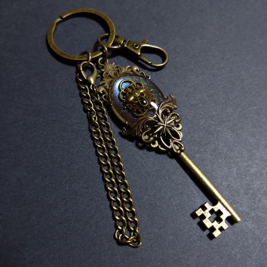 | 紹介文 | ୨୧┈┈┈┈┈┈┈┈┈┈┈ ୨୧ どんな扉も開けてしまえそうな 古びた色の魔法の鍵 宝石のように輝く中には 金属の不思議な文様 この鍵が何を開くのかは まだ解明されていない 意外と身近な何かを 開くための鍵かもね 例えばその頑固な心とか! ୨୧┈┈┈┈┈┈┈┈┈┈┈ ୨୧ 大きな魔法の鍵が欲しくて作りました。 トートバッグなどのバッグにキーホルダーとしてつけるのがおすすめです チェーンの先のカニカンに家の鍵などをつけ、ナスカンにつなげておくと カバンの中で鍵を無くさずに済み、鍵を探さずに使えます。 カニカンとナスカンに繋ぐことで、落下防止のケアも万全です。 実用性のあるファンタジーをどうぞ。 |