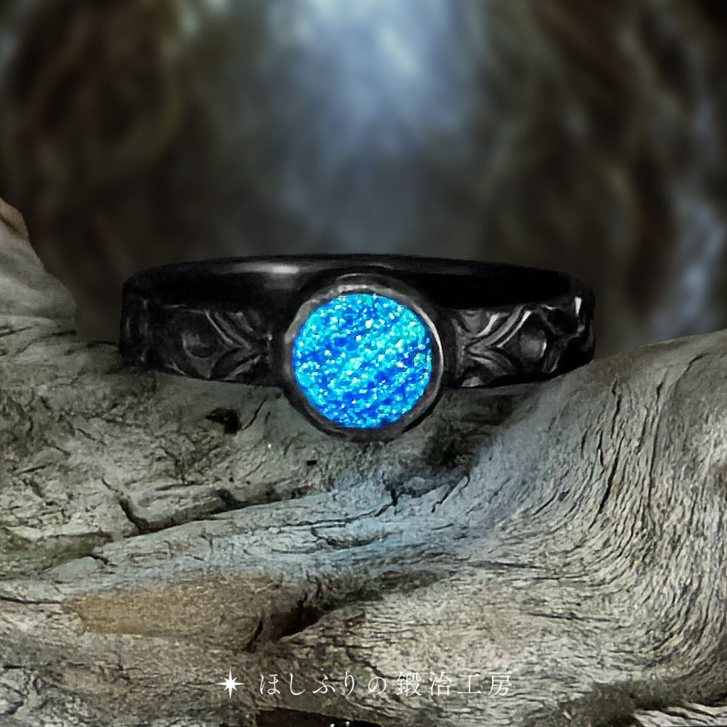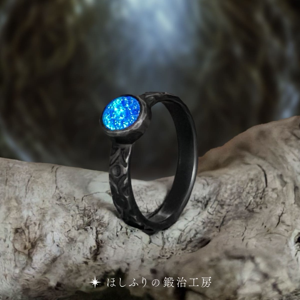 精霊アストラの魔力を宿す指輪。 旅立つ者の無事を祈りながら鍛えられた。 星降りの儀式の中で造られ、 指輪の中心には「精霊石」が据えられている。 ー<精霊石とは>ーー 装備に星の加護を付与するために使用される特別な石。古くから精霊アストラの魔力を宿す媒介として扱われてきた。 闇が深まるほどに内に宿した魔力が顕現し、ぼんやりと青白く発光する不思議な性質がある。 目に見える力よりも、魔法や霊性を重んじてきたこの国では、精霊石は貴重で重要な存在であった。 ーーーーーーーーーー 鍛え上げられた直後の指輪は、銀の表面が黒く沈み、古代遺物のような哀愁をまとう。 だが、日々の着用に伴う摩擦で少しずつ目を覚まし、銀本来の重厚な輝きを取り戻していく。 時間とともに姿を変え、身につける者の生活に馴染みながら、この指輪は静かに完成へと向かう。 精霊アストラよ。どうかこの者をお守りください。 ※この商品説明には一部フィクションを含みます。 <仕様> 金属部分:シルバー950(銀の含有率が95%の純度が高い銀合金) 精霊石:ガラスを主成分とする工芸品(鉛を使わず環境や人体にやさしく配慮されたガラス素材を使用) ほしふりの鍛冶工房サイトはこちら↓ https://hoshifuri.net/