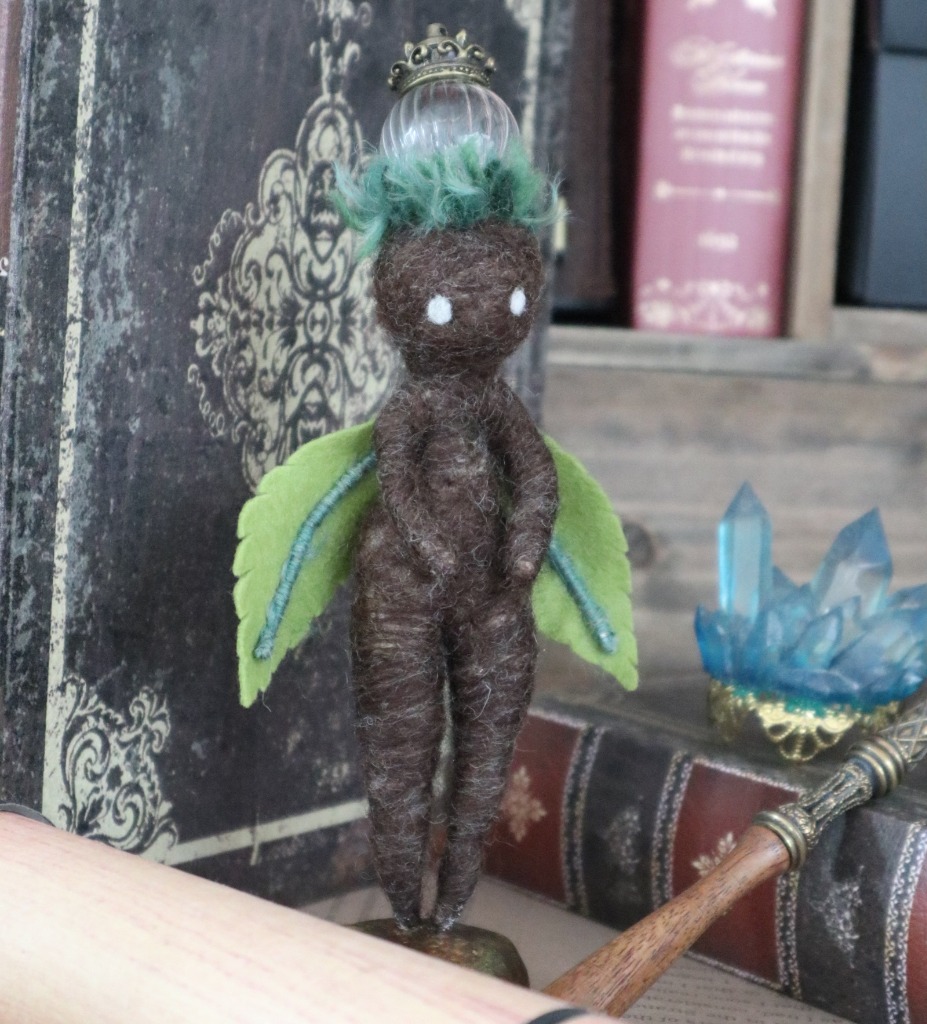 | 紹介文 | 【智慧の実】 妖精の一種。人型だが植物の特徴も持ち合わせ、葉っぱのような2枚翼と、頭上に透明な実をつけている。魔法文字を好み、書物の多くある場所に住みつくため、智慧の実と呼ばれる。 魔力に反応して、実が暗所で仄かに光ることから、魔法学生の勤勉の友として、魔法学院の寮歌にも登場する。 |