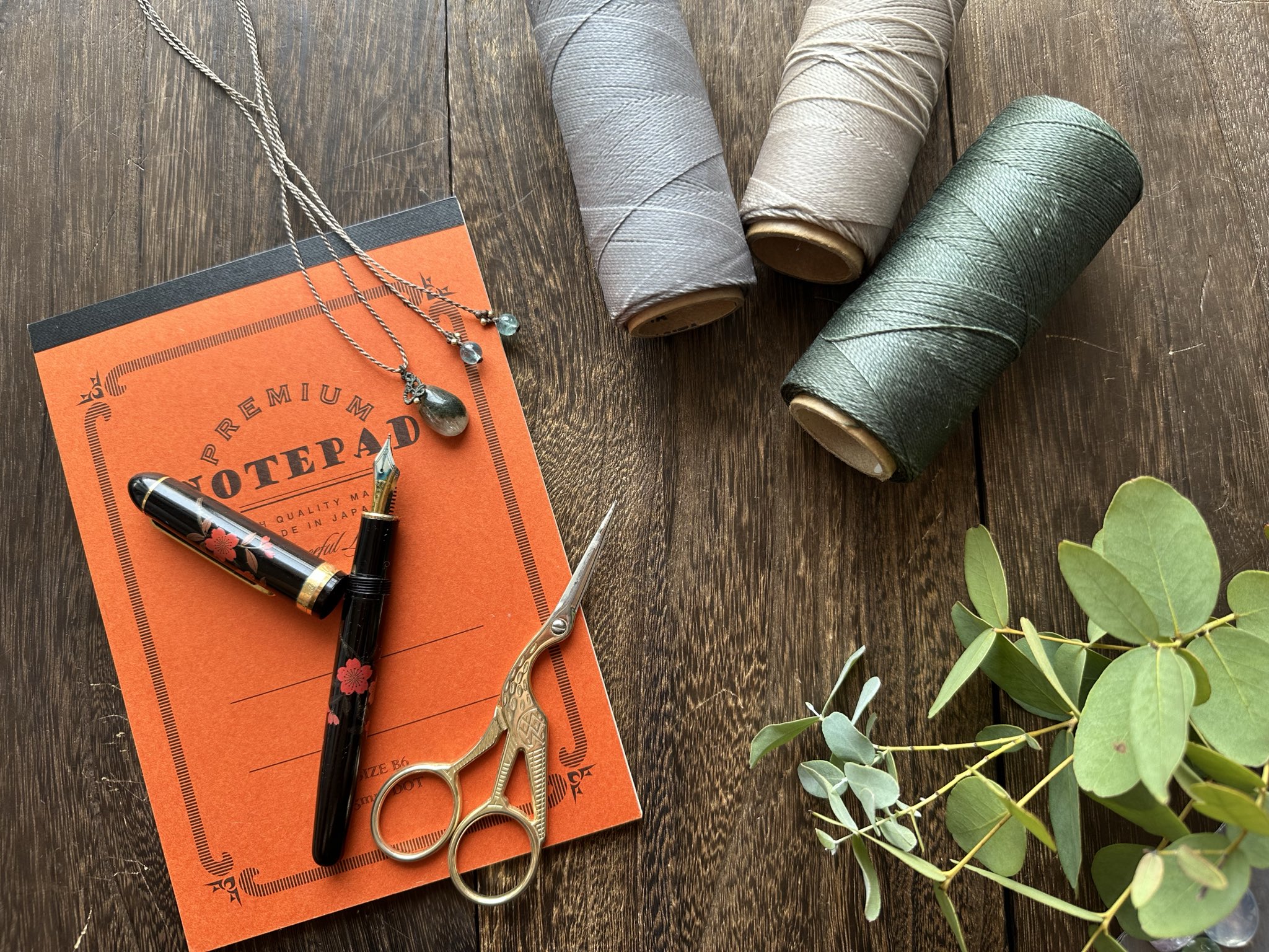 (普段使用しているデザイン帳やワックスコードなどの道具たち)