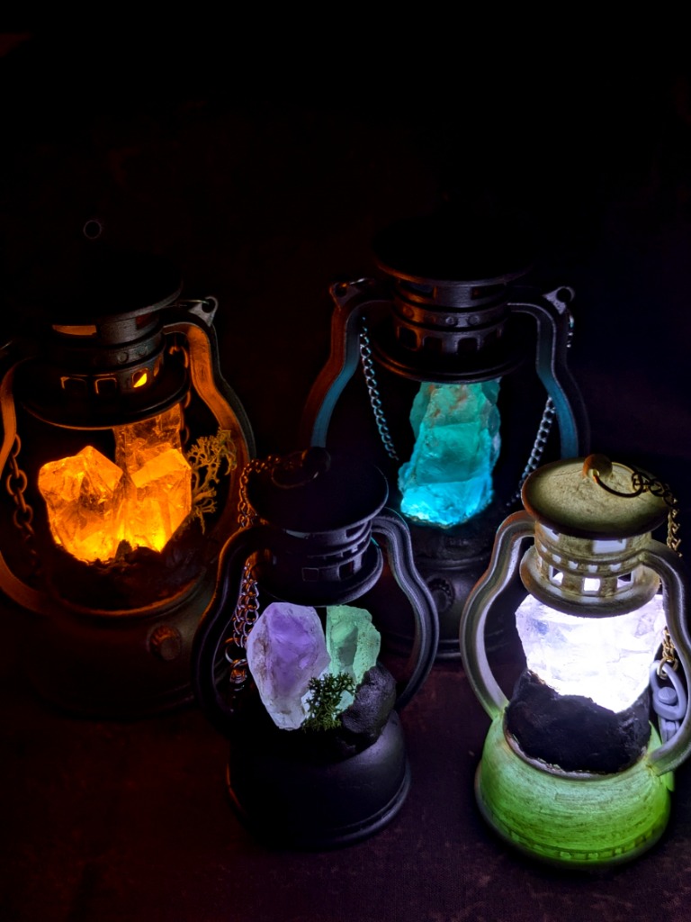 アンティーク調のランタンや錬金術の瓶、クリスタル入りのボトルなどは、置くだけで異世界の一室のような特別感が出るでしょう。