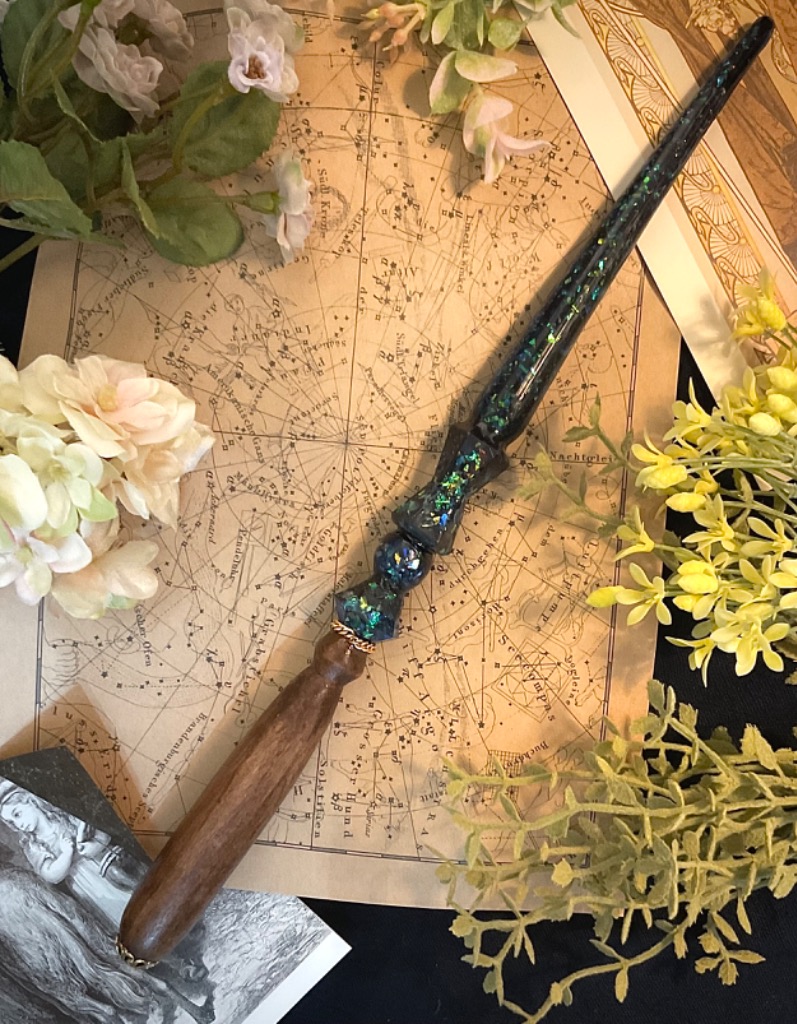 角度によって表情を変えるブルーが印象的な魔法杖。