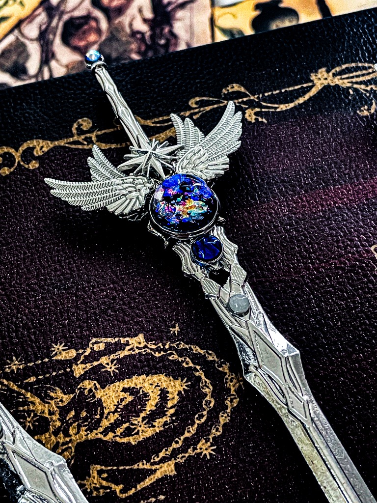 | 紹介文 | 《冥曜の剣》 ‧͙⁺˚*・༓☾✩☽༓・*˚⁺‧͙ 深淵の魔力と星の欠片を融合させ 錬成する‘コレ’は… 光と闇 希望と恐怖 再生と破壊 昏き魔力をまとわせ 剣身に曜(ひかり/光り輝くモノ)が宿る瞬間 冥曜はただの武器ではなく “暗闇の中で光を放つ”両極を統べる意志となる 両極を知る者のみが持てる刃… 「ココ」を照らす光となるか 或いは深淵を引き寄せる闇となるか 全てはこの剣と選ばれし者の心に委ねられる ‧͙⁺˚*・༓☾✩☽༓・*˚⁺‧͙ 光・闇属性強化 統合+10 バランス+10 限界突破+10 精神統一+10 ‧͙⁺˚*・༓☾✩☽༓・*˚⁺‧͙ 初めての剣(武器)となります 全長20センチ程の短剣です 太ももやマント内に携えるものとして… 淑女的な使い方では 「簪」としてお使いいただきつつ いざという時の護身用アイテムとして… 気分によって 裏表で雰囲気を変えることができます いつもの如く 暗くなるとふんわりと光る部分も…  |