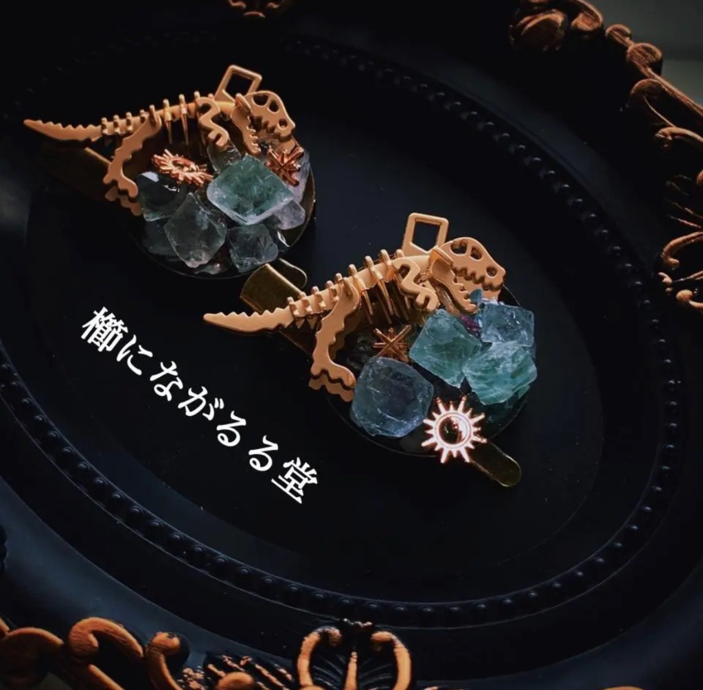 | ハッシュタグ | コサージュ ブローチ 恐竜 蛍石 フローライト 鉱石 星 |