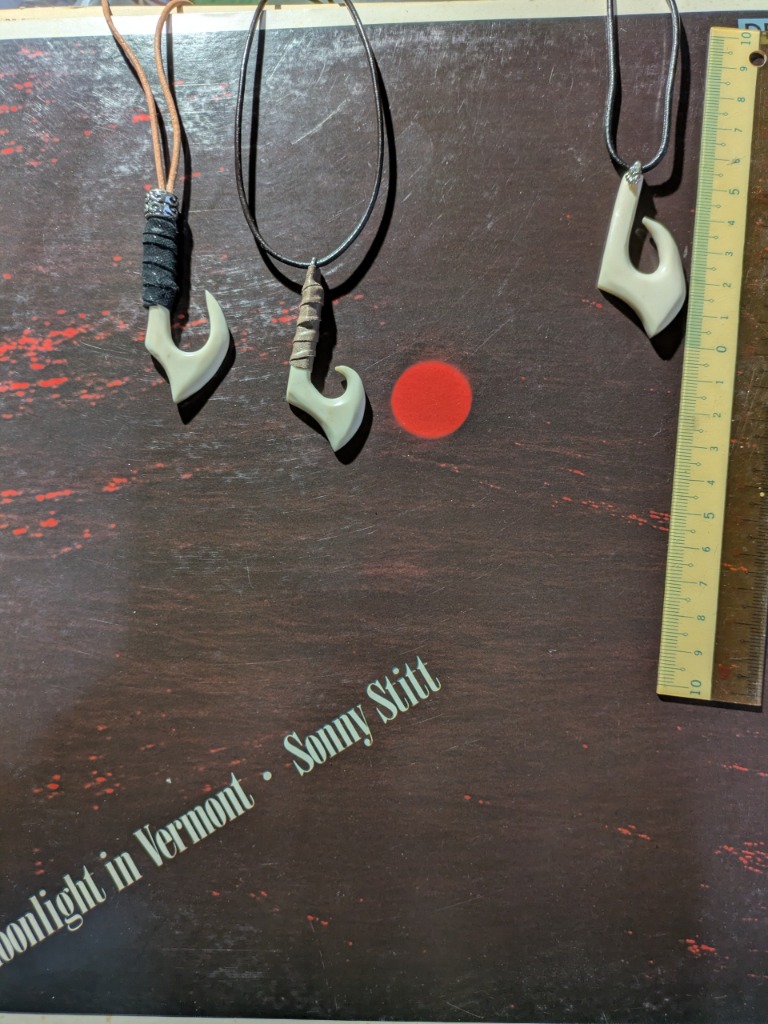 | 紹介文 | 鹿角をボーンカービング風にしてみました、左の2つは角の上部にレザーをまいています。 |