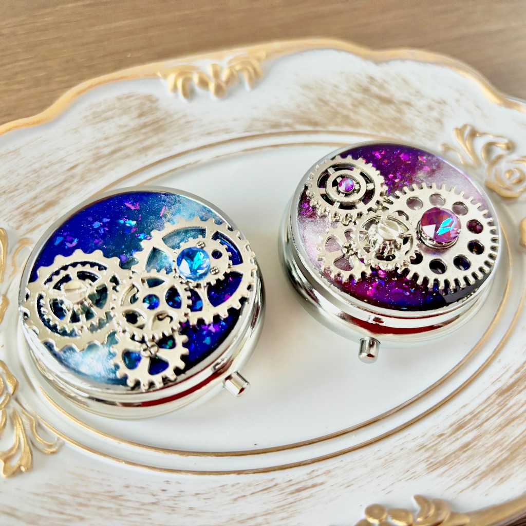 深みのある色合いときらめきが魅力の小物入れで、まるで手のひらサイズの星雲を飾っているような感覚を味わえます。
